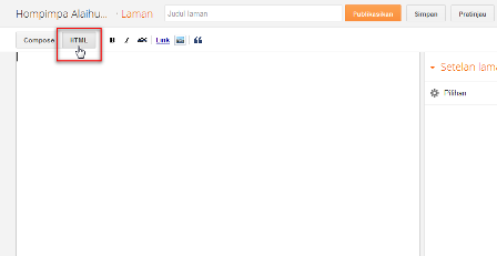 Setelah itu Anda akan melihat formulir halaman statis seperti ini. Klik mode HTML: